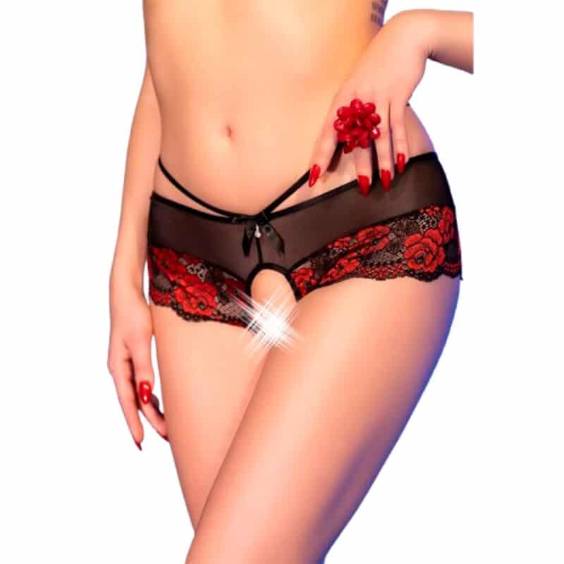 CHILIROSE – CR 4844 PANTIES ROJO M. El encaje baila como seda sobre tu piel, despertando chispas de deseo. Rosas rojas y una atrevida abertura invitan a explorar cada curva. Pura tentación, de PIKANTEO. Siente la ola. 🔥