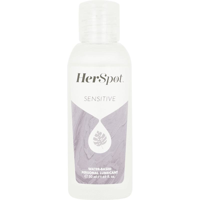 Presentamos Sensitive Lube por HerSpot. Este lubricante a base de agua proporciona un deslizamiento placenteramente suave incluso para las damas más delicadas.