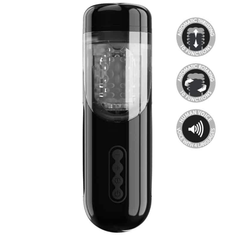 Estamos orgullosos de presentarles el último masturbador masculino: un masturbador masculino con giratorio y empuje automático de primera calidad. Este masturbador lo hace todo: el interior giratorio proporcionará diez velocidades diferentes de sensaciones increíbles y diez niveles de empuje. Puede moverse para obtener el ángulo perfecto para un acabado increíble. Este masturbador automático para hombres sacudirá tu mundo mientras gira y te masajea de todas las formas correctas.