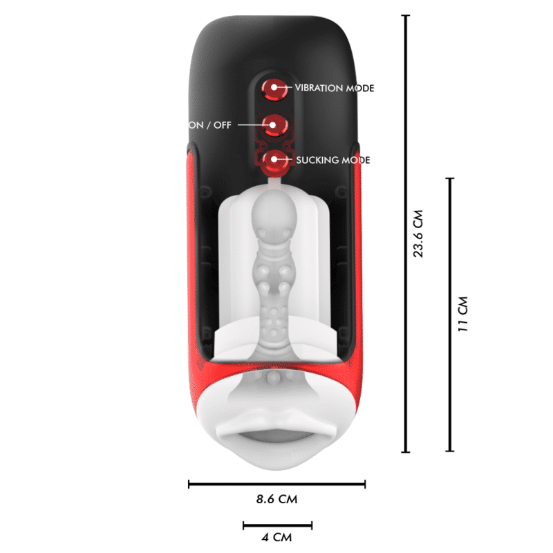 El masturbador automático con forma de boca para hombre BLAZE de la marca JAMYJOB es un dispositivo innovador y elegante, diseñado para proporcionar una experiencia estimulante y placentera de alta calidad. Con un diseño en color negro y rojo y detalles en rojo, este masturbador combina estética y funcionalidad en un solo producto.