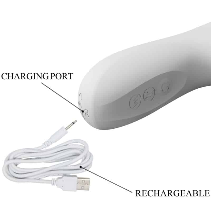 Vibrador de conejo con vibración de varias velocidades, empuje y amp; ¡la rotación estimula la vagina y el clítoris al mismo tiempo! El vibrador de conejo de Pretty Love tiene una textura agradable y gira y gira profundamente dentro de la vagina mientras masajea el punto G. El clítoris es estimulado al mismo tiempo por el estimulador flexible con vibraciones. Este programa de placer completo con vibración, empuje y rotación de múltiples velocidades se puede controlar fácilmente con el botón de control. El vibrador se ajusta perfectamente a la anatomía femenina y está completamente hecho de un material de silicona suave y aterciopelado que se siente muy bien contra la piel durante el juego. Además, el vibrador se puede recargar con el cable USB incluido.