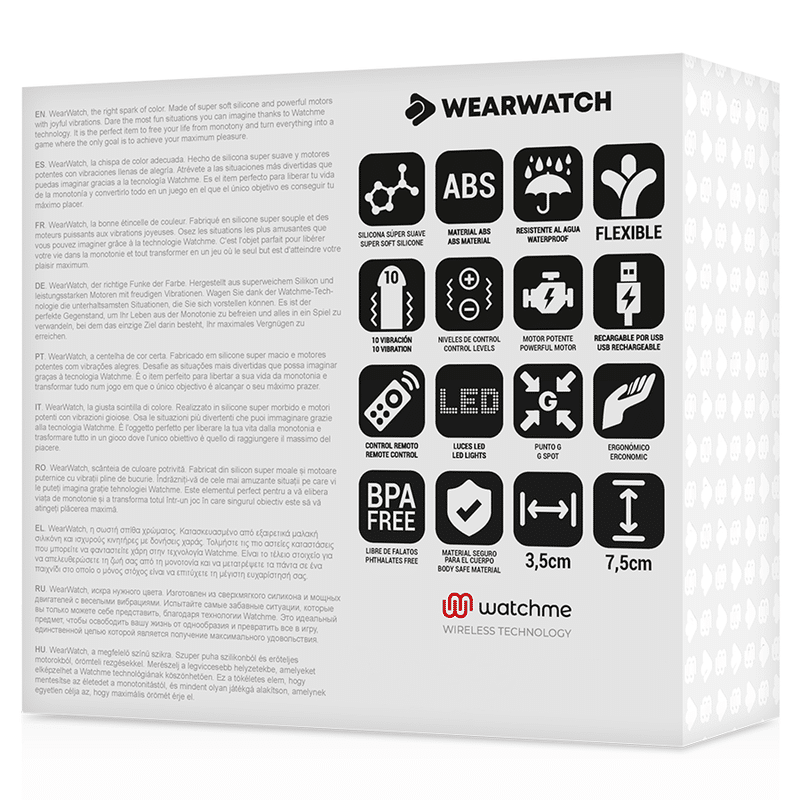 Día tras día, hemos puesto todo lo que sabemos en nuestros productos. WEARWATCH nace de la filosofía de vida, la alegría, el sexo y la complicidad. Todo nuestro conocimiento, habilidades y experiencia. Nuestro nombre lo dice todo: WEARWATCH es sinónimo de juguetes de alta calidad que te hacen volver… volver por más. Para que eso suceda, siempre estamos probando cosas nuevas. Aprendemos, innovamos e investigamos nuevas técnicas todos los días. La creación de un nuevo motor o programa consiste en encontrar la estimulación adecuada para adaptarse a cualquier estado de ánimo, punto de acceso o cuerpo en forma de formas que hablen por sí mismas.